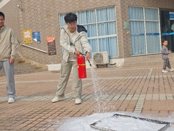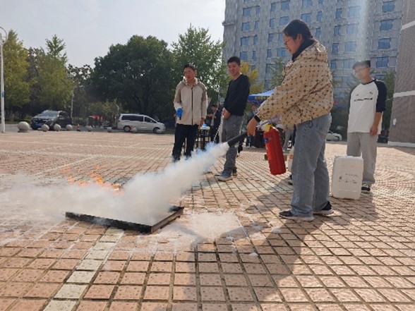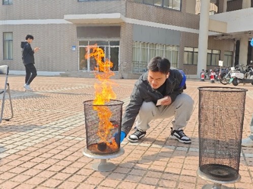 光看不练假把式!灭火器实操体验区依旧是本次活动最“实用”的环节。在专业人员的指导下,同学们将“提、拔、握、压”的口诀熟练运用于实践,对准火焰根部,果断出击!火焰一次次成功扑灭。