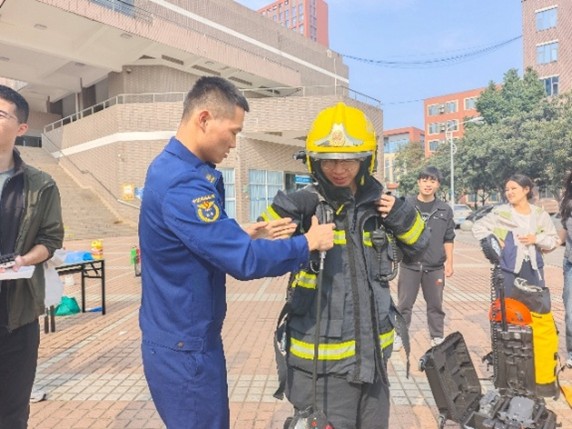现场设置了小实验演示、灭火器灭火、VR模拟火场灭火救援等丰富的体验环节,各个体验区前同学们热情高涨,活动精彩纷呈,气氛热烈。