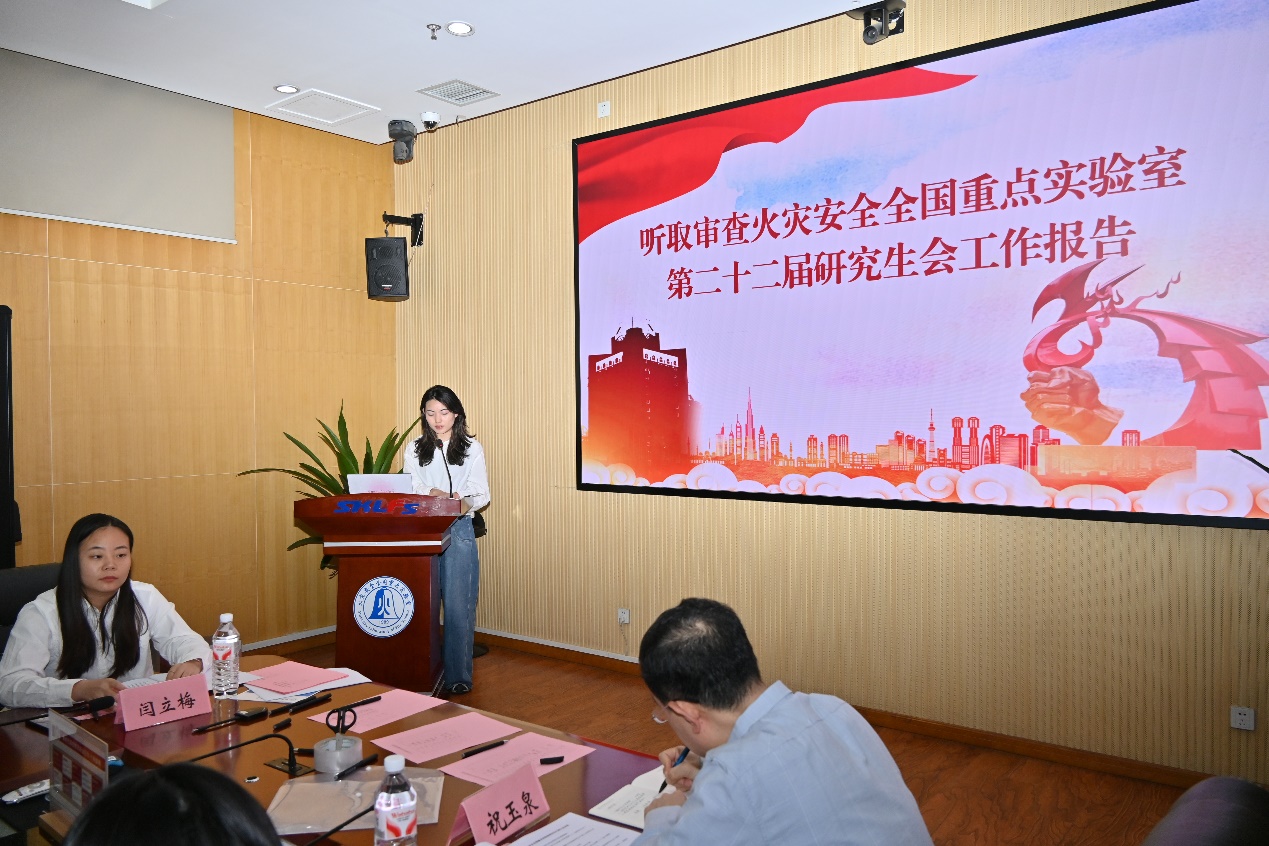 大会第二项,听取并审查第二十二届火灾安全全国重点实验室研究生会主席团成员马子睿所作的题为《守正创新担使命,奋楫扬帆启新程,加快建设研究生会发展新篇章》的工作报告。报告全面回顾了过去一年实验室研究生会在思想引领、组织建设、品牌活动、宣传阵地、成长服务等方面的扎实工作与显著成效。过去一年,研会始终坚持政治引领,筑牢青年思想根基;不断健全运行机制,夯实组织建设基础;丰富文体学术品牌活动,凝聚师生奋进合力;构建全媒体传播矩阵,提升组织影响力;优化成长服务平台,助力研究生成才发展。报告立足学校“双一流”建设与实验室发展大局,总结经验、正视不足,并对下一阶段工作作出系统部署,提出要持续深化改革创新、强化服务效能、完善院校班三级联动机制、提升基层组织战斗力,更好地发挥桥梁纽带作用,为广大研究生成长成才提供坚实保障,以青春担当助力实验室与学校高质量发展。