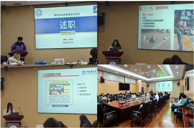 2025年12月17日中午十二点半,火灾安全全国重点实验室研究生会(后简称“研会”)骨干述职评议会于西校区火灾特种楼209成功举办。本次会议由火灾安全全国重点实验室研究生会第二十二届主席团成员马子睿主持,研究生会全体成员参与本次会议并进行述职报告。